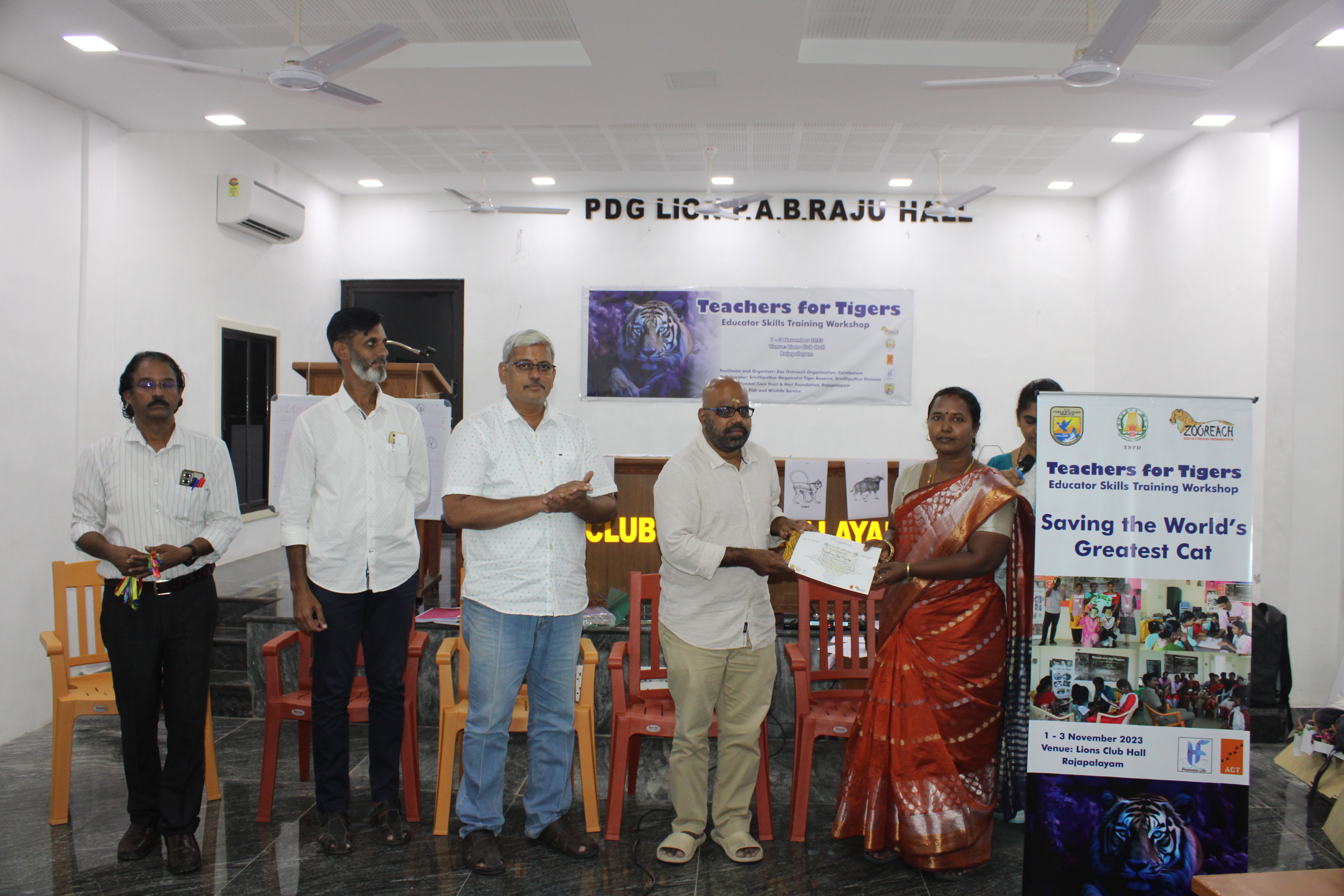 Training was given to the school teachers on Tiger conservation at Auditorium, Lions Club of Rajapalayam trust. The programme was organized along with Zoo outreach trust. A total of 30 teachers were participated in the event. The training was given for 3 days in November 2022.